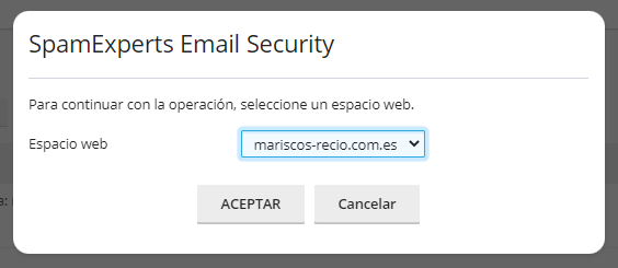 - Selecciona el espacio web en el desplegable y Aceptar.